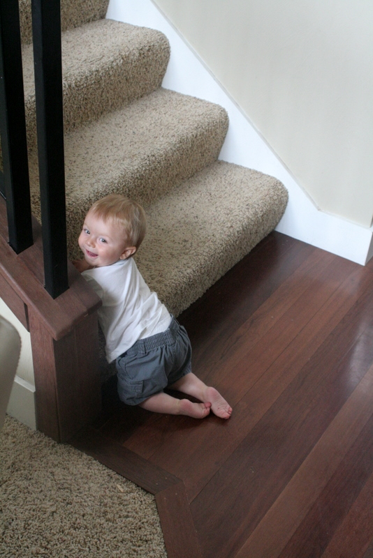 I knew it would happen any day, but I was hoping he would hold off a little while longer. Tate figured out how to climb the stairs:
